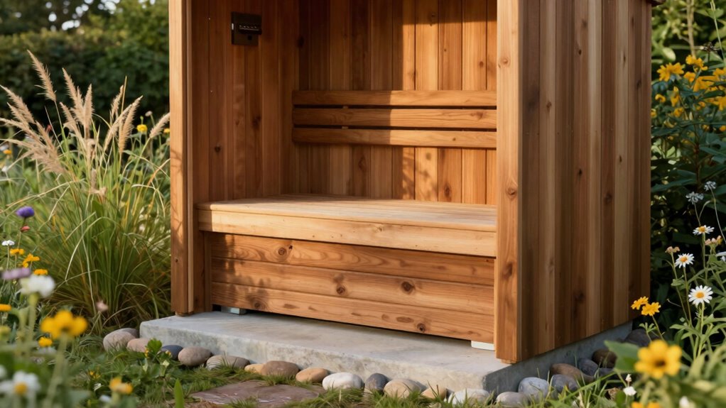 Building a durable and long-lasting outdoor sauna requires careful planning and attention to detail throughout the entire process. To guarantee longevity, focus on quality materials and proper construction techniques. Here are some final tips: