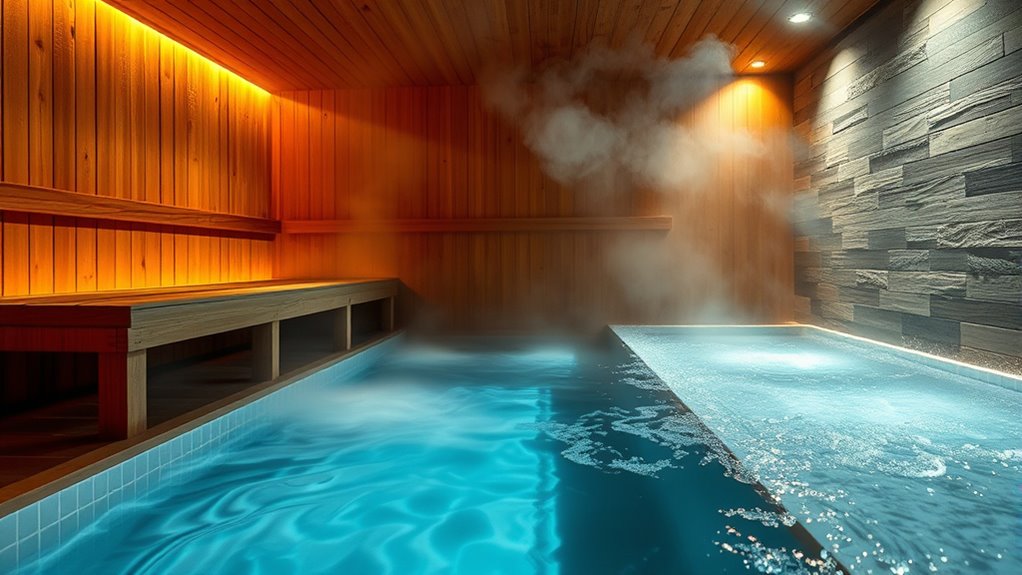 By switching between hot saunas and cold plunges, you activate circulation and boost recovery. Studies show that contrast therapy can reduce muscle soreness by up to 30% and improve overall well-being. So, next time you’re feeling fatigued, try this cycle to invigorate your body and mind. Remember, consistency is key—incorporate contrast therapy into your routine, and you’ll reap the benefits in both performance and relaxation.