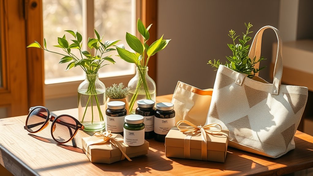 Choosing an eco-friendly gift that truly resonates with the recipient involves more than just picking something attractive. You need to contemplate their values and interest in sustainability, ensuring the gift aligns with their eco-conscious lifestyle. Think about their daily routines and preferences so the item will be used and appreciated regularly. It’s important to select products made from biodegradable, recyclable, or sustainably sourced materials that match their environmental ideals. Also, keep in mind any allergies or sensitivities they might have to certain natural ingredients or materials. Finally, opt for versatile and practical gifts that fit seamlessly into their routines, encouraging ongoing eco-friendly habits. When you consider these factors, your gift will be meaningful, useful, and truly appreciated.