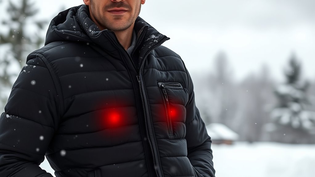 Have you ever experienced cold spots in your heated vest that leave you feeling uneven warmth? This usually happens when the heating zones don’t cover all your key areas. When choosing a vest, I look for models with multiple, well-placed heating zones that target the back, chest, collar, and abdomen. More zones generally mean better coverage and more consistent warmth, especially during long outdoor activities. I also check if the vest offers independent zone control, so I can customize heat where I need it most. Strategic placement is key—whether I’m skiing, hunting, or commuting—ensuring the vest matches my activity and keeps me comfortable without overheating. Good coverage not only boosts comfort but also enhances safety by preventing uneven heating.