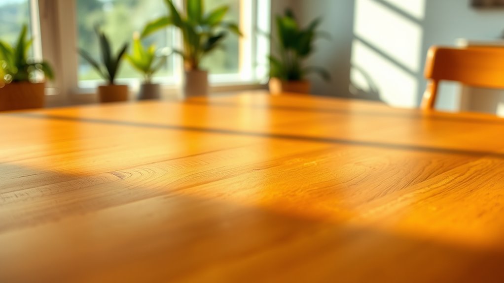 When selecting a non-toxic wood finish for indoor furniture, durability and resistance are key factors to contemplate, as they determine how well the finish protects against everyday wear and environmental challenges. Some finishes penetrate deeply into wood fibers, creating a tough surface that resists chipping, cracking, and peeling. The chemical makeup of eco-friendly options, like natural oils and waxes, influences their ability to withstand moisture, scratches, and stains. Finishes with strong film-forming qualities provide better protection against spills and physical abrasion. Ultimately, the longevity of a finish depends on its capacity to maintain these protective properties over time without degrading or losing adhesion. Choosing a finish with superior durability ensures your furniture remains beautiful and protected for years to come.