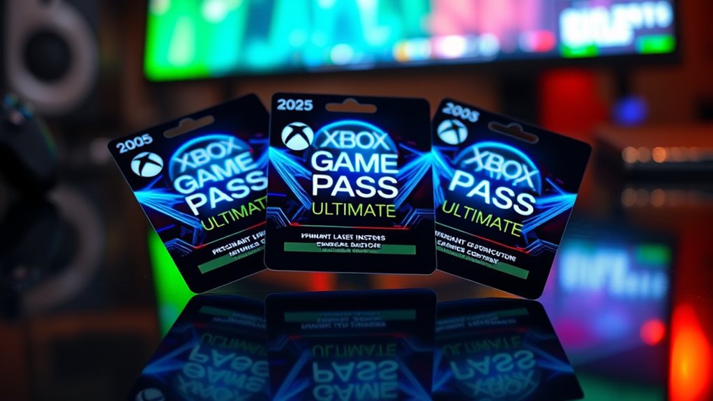 Considering the various renewal and cancellation policies, it’s also important to look at the special edition offers available for Xbox Game Pass Ultimate digital codes. These editions often include exclusive in-game content like outfits, weapon skins, or hero passes that boost gameplay. Limited-time bundles may combine the subscription with physical collectibles or themed merchandise, adding extra value. Some special editions grant early access or beta privileges for upcoming game releases, giving you a competitive edge. Discounted upgrade options are common, allowing you to access additional content at a lower cost. Additionally, exclusive digital bonuses such as extra in-game currency or VIP privileges are often included, enhancing your overall experience. These offers can markedly enrich your gaming journey if they align with your preferences.